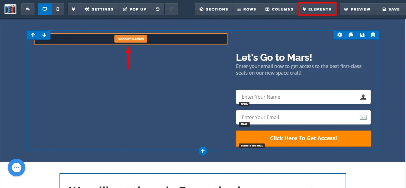 或者,您可以从上图中显示的“元素”选项卡添加新元素。