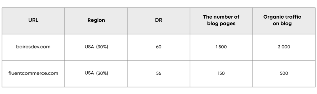 从同一地区流量百分比相同的 IT 公司网站的示例中可以看出,文章吸引自然流量的效果并不直接取决于文章的数量。 相反,优化和内容推广策略很重要。 因此,一个有几篇文章 x10 的网站只为博客吸引 x6 的自然流量(根据 Ahrefs):