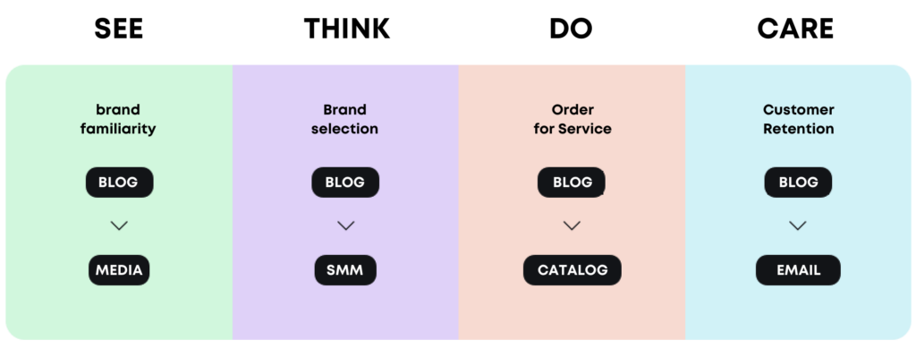 值得注意的是,IT 博客不仅仅是通过 SEO 来吸引有机物。 它是相关转换链中的重要环节。 一篇博客文章成为转发到其他品牌传播渠道的基础:社交网络、信使、电子邮件和外部平台。 在这种情况下,产生想法和创建内容单元的成本会降低,吸引流量的渠道数量会增加。