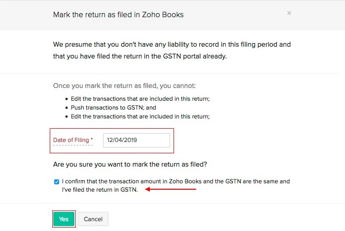 如果您直接通过 GST 门户提交申报表,那么您可能需要将申报表标记为已提交到 Zoho Books 的仪表板中。 这将防止您出现任何进一步的混乱。