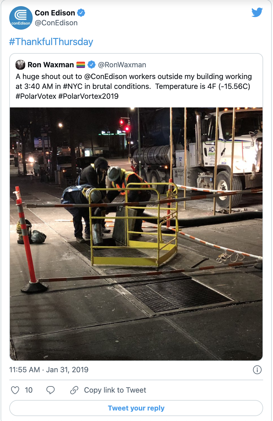 公用事业公司经常在网上得到一个坏名声。 如果有人向他们的电力或天然气供应商发推文,这很可能是由于问题或停电造成的。 为了解决这个问题,ConEdison 对社交媒体采取了积极主动的方式,定期发布帖子,让追随者保持关注。