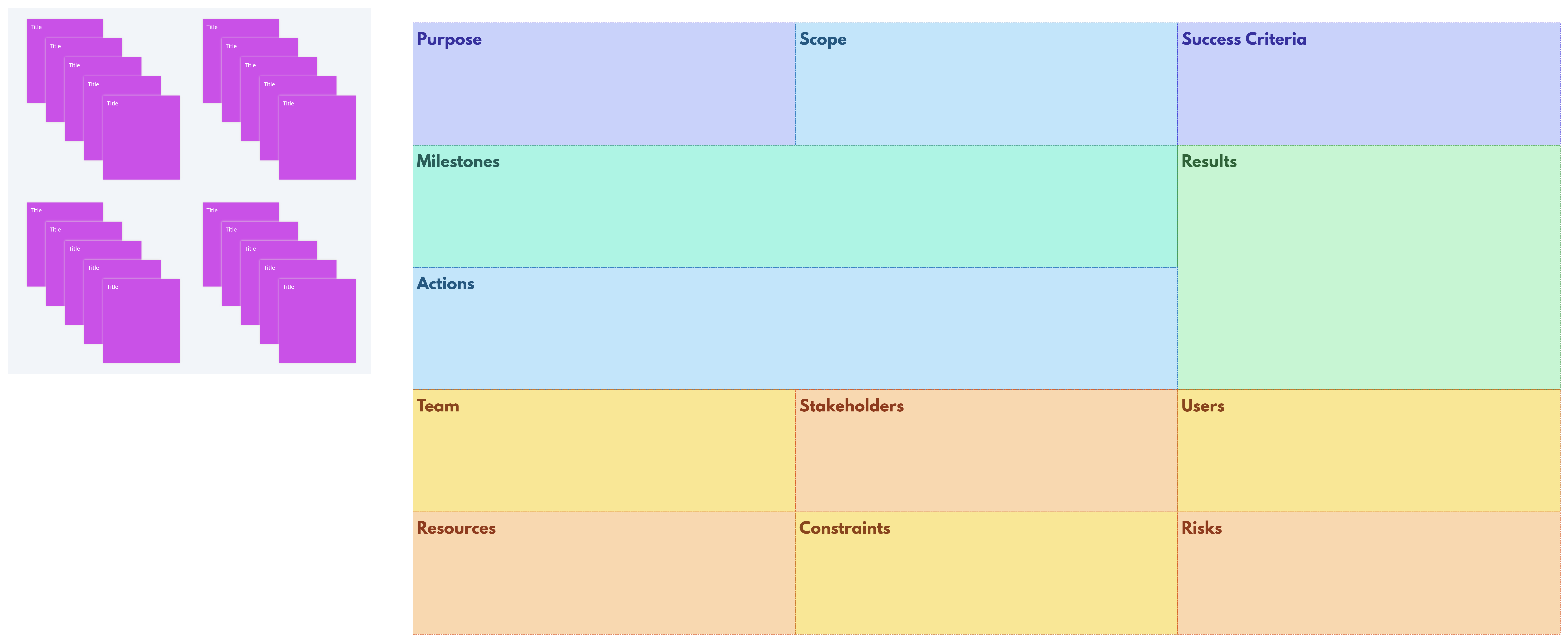 项目画布模板是项目管理和规划的强大工具。 该模板提供了项目的高级概述,捕获基本细节并根据项目目标调整团队成员。 这是一种简洁、直观的方式来传达项目要点,确保每个人都在同一页面上并朝着共同的目标努力。