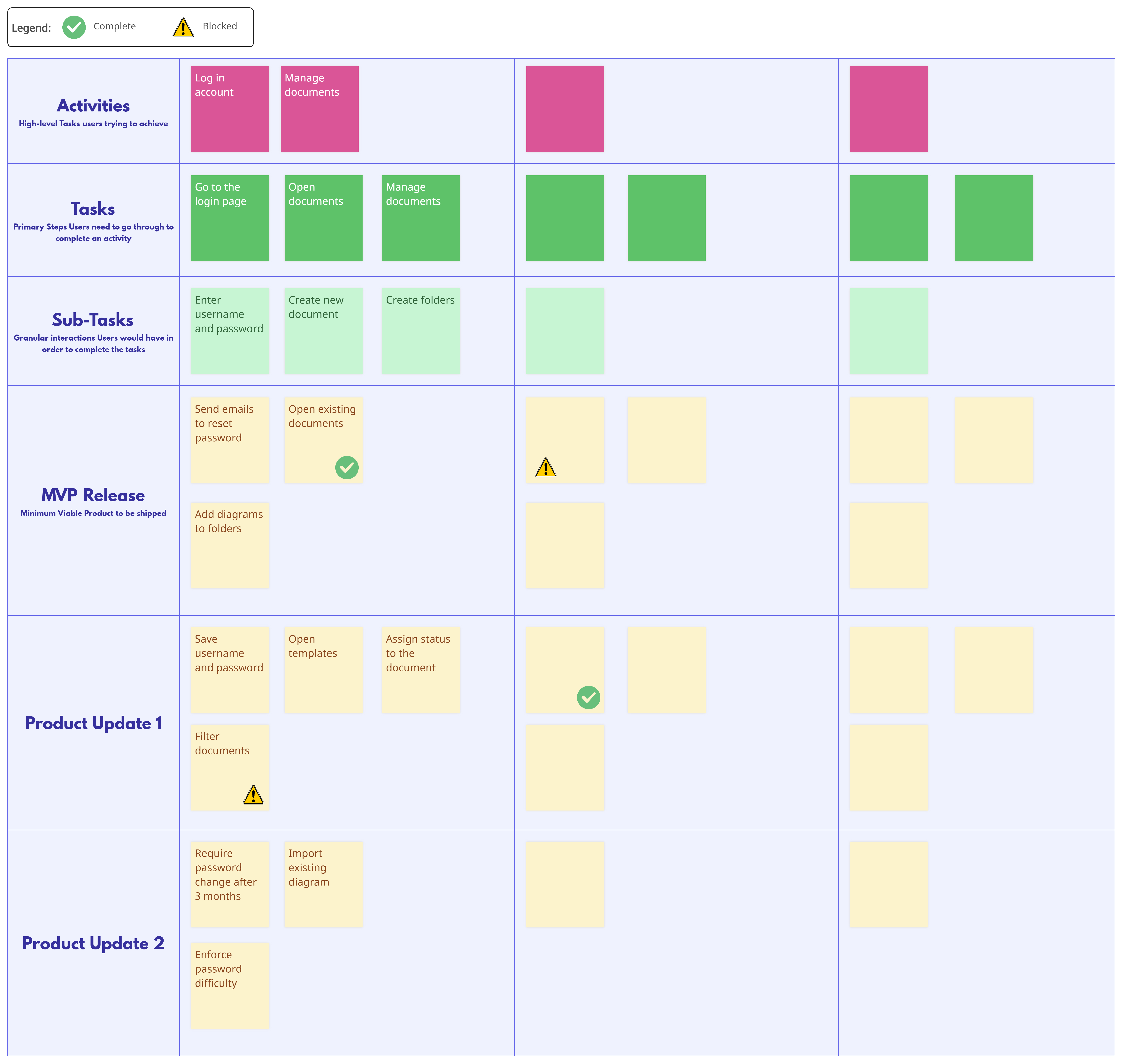 - 构建路线图:使用用户故事图来构建产品路线图。 该路线图将有助于指导开发过程,确保团队在每一步为用户提供价值