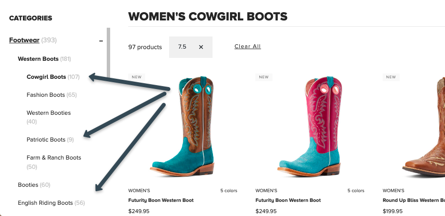 如果您还没有采用任何这些 DTC 电子商务 SEO 策略,请先从产品类别页面优化开始(在类别之间添加优化的文本和内部链接)。 如果您需要向您的开发团队提交工单以确保您的产品类别页面优化符合要求,您可以利用这段时间来处理教育文章,直到开发工单完成。