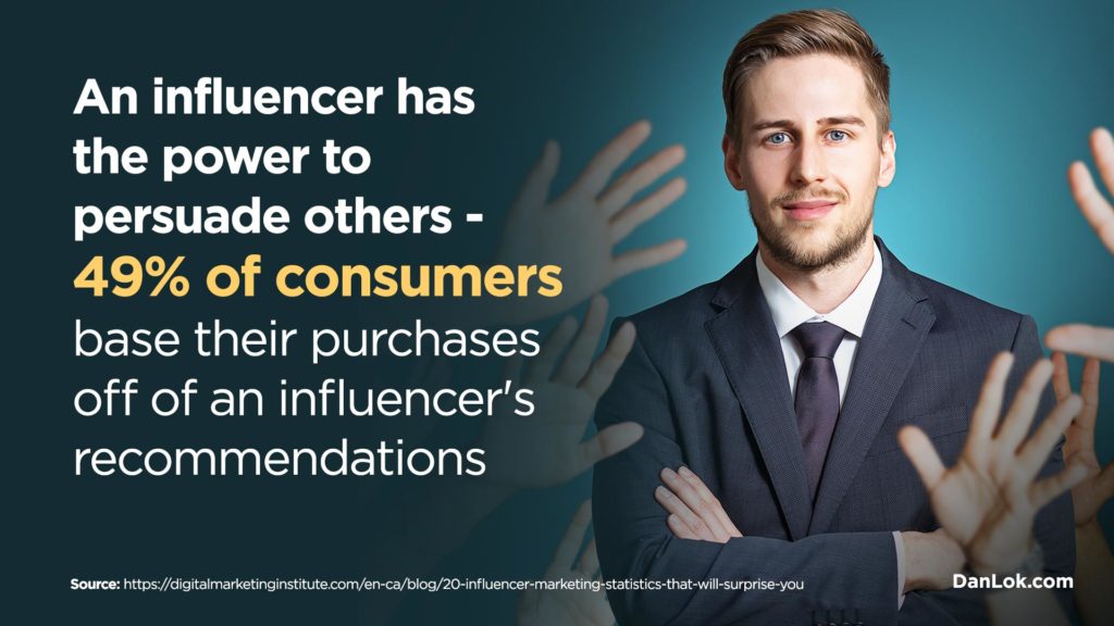 其次,影响者具有名人地位。 因为许多人仰慕甚至可能渴望成为和他们一样的人,所以他们坚持他们的每一个字。 因此,在影响受众采取行动方面,影响者拥有很大的权力。 事实上,研究表明, 49% 的消费者根据影响者的推荐进行购买。
