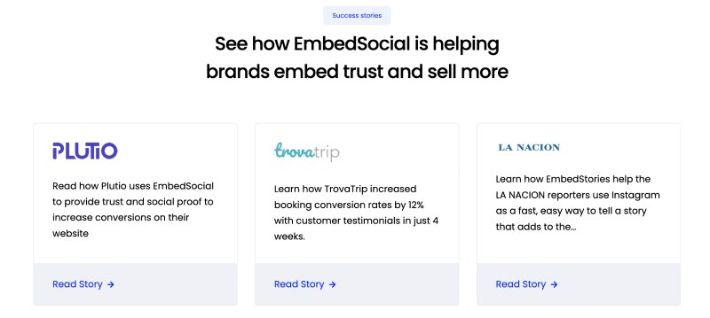 EmbedSocial 可以生成并在您的网站上嵌入 Instagram 照片以及实际客户发布的产品。 它适用于每个主要的社交媒体平台,并提供各种小部件以将用户生成的内容嵌入到您的登录页面