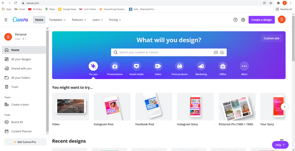 Canva 是一款多合一的在线设计工具,适用于没有设计经验的人。 大多数营销人员将 Canva 视为一种图像设计工具,但它远不止于此。 它可以帮助您设计从社交媒体图形到发票到 PDF 到传单的所有内容。