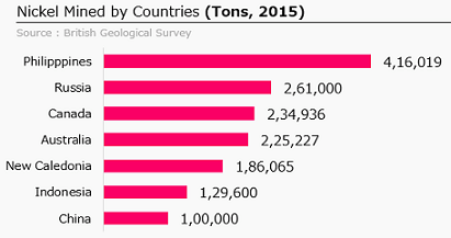 2015 年,主要生产商仅持有高达20% (菲律宾采矿)和30% (中国炼油)的份额。 据估计,澳大利亚拥有全球24%的储量。