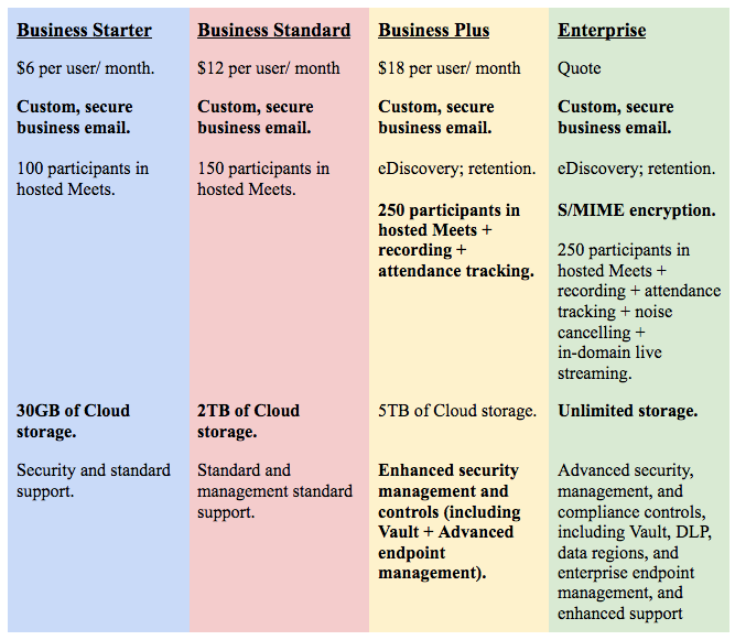 每个企业都是不同的。 Google 的新 Workspace 平台添加了新的订阅计划以反映这一变化,同时满足小型、中型和大型企业的需求……但价格不同。 每个计划都包括 Gmail、Drive、Meet、Calendar、Chat、Docs、Sheets、Slides、Keep、Sites、Forms 和 Currents。 它们在提供的支持和存储方面有所不同。