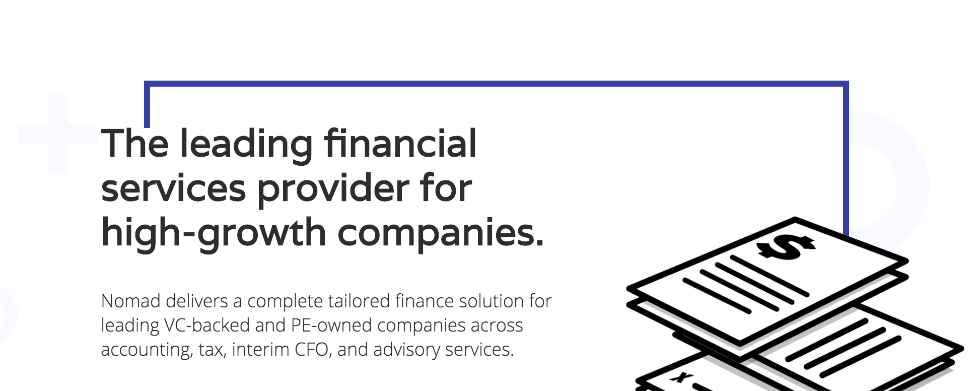 这意味着他们已经测试、证明和标准化了财务流程,并且可以将他们的经验无缝地应用到您的业务中。 更不用说,如果他们碰巧遇到问题,他们会比大多数候选人更好地缓解问题。 例如,Nomad Financial 提供了一个三步法,利用会计、税务、CFO 和咨询服务为客户提供结构,使他们能够更快地扩大规模。