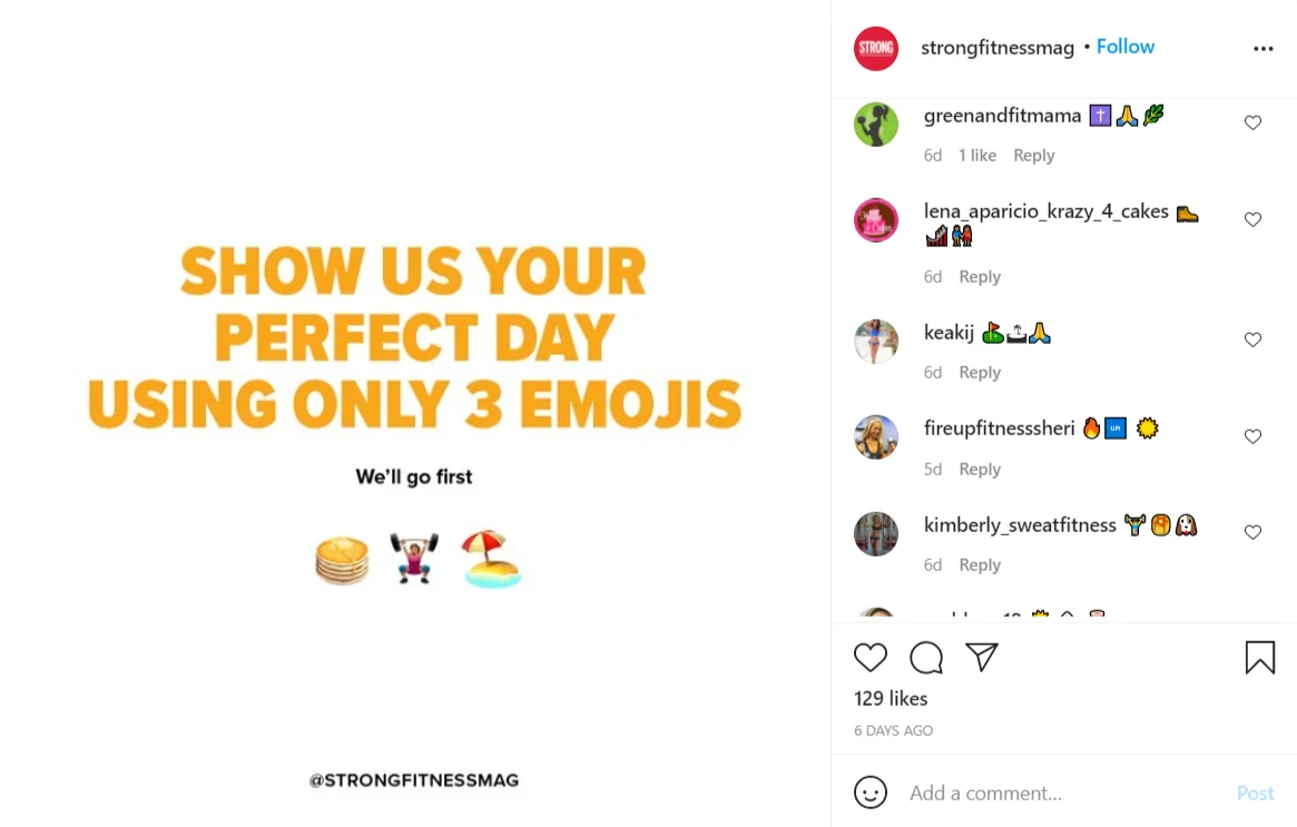 根據 Adobe 的表情符號趨勢報告,“65% 的表情符號用戶更願意通過表情符號表達自己的情緒,而不是打電話。” 因此,舉辦 Instagram 贈品或競賽,要求追隨者通過表情符號表達自己,是一種有趣的開始對話的方式。