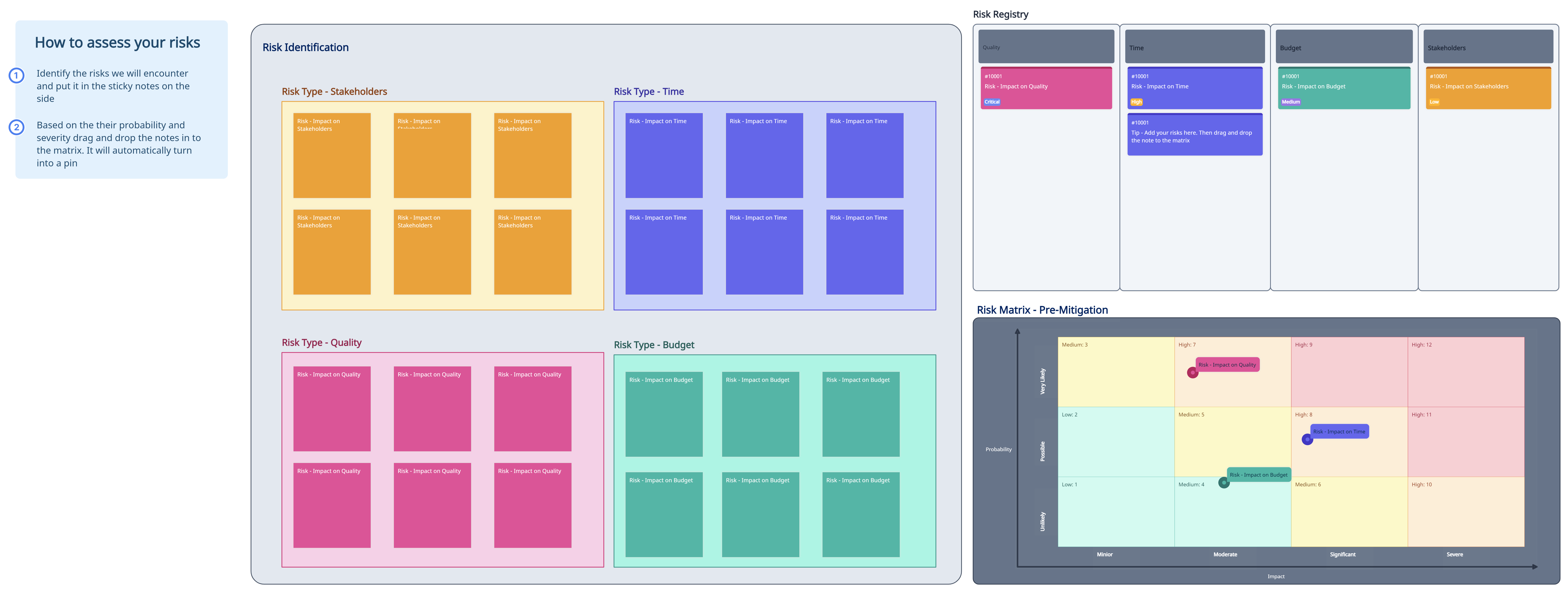 - 制定緩解策略:對於每個高優先級風險,集思廣益並概述潛在的緩解策略。 這些策略應有助於降低風險的可能性或影響。