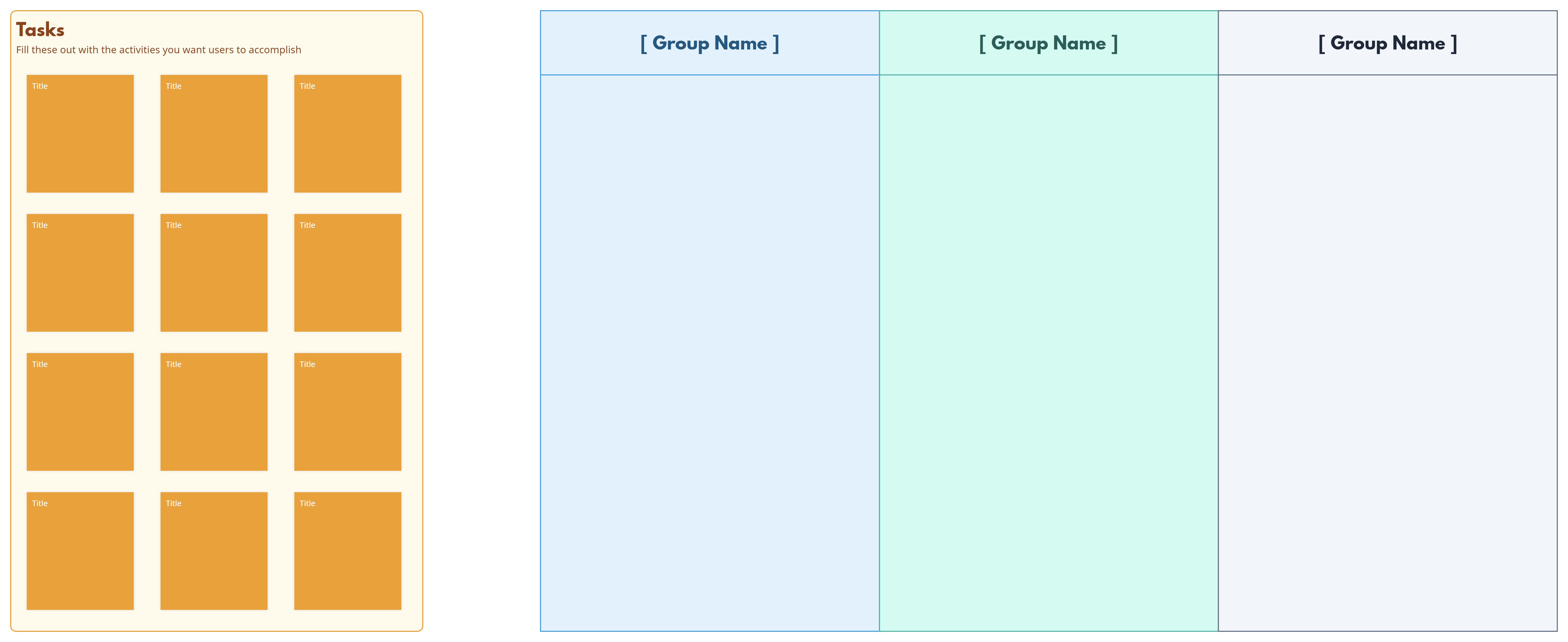 - 對卡片進行排序:在參與者之間分發內容卡。 要求他們以對他們來說最有意義的方式對卡片進行分組和排列。 他們可以使用自己創建的類別或標籤。