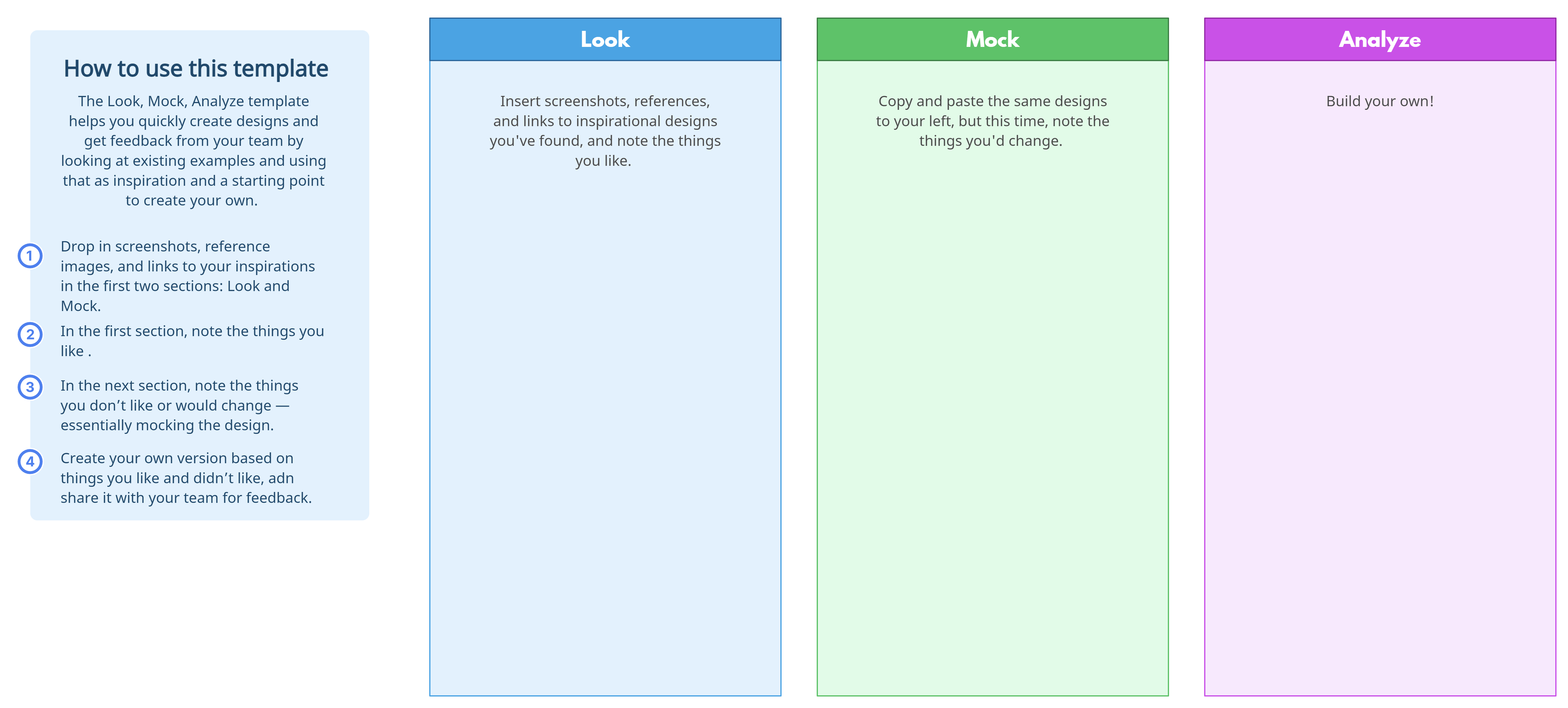 外觀、模擬、分析模闆對於用戶體驗設計師來說是一個方便的工具,旨在通過團隊合作改進他們的設計。 此在線可視白板模板簡化了審查用戶界面、查找需要改進的領域以及鼓勵富有成效的討論的過程。 通過指導設計師和利益相關者進行結構化評估,該模板有助於創建用戶友好且有效的數字體驗。