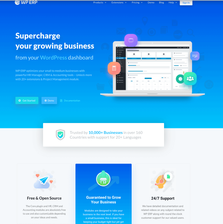 WP ERP 是第一個基於 WordPress 的 ERP 解決方案,具有成熟的內置會計系統以及 CRM 和人力資源經理。 結合 WordPress 平台的優勢(開源、基於 Web、可定制性、一流的 CMS),WP ERP 因其可理解性和易用性而脫穎而出。
