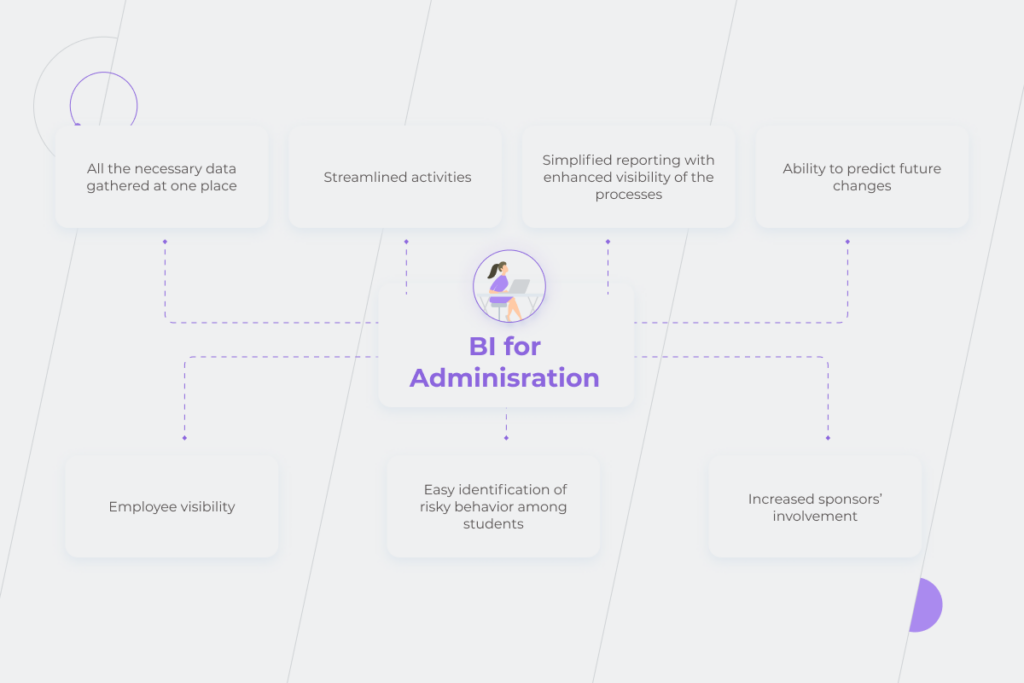 使用 BI,可以自動收集不同類型報告的數據以及贊助商的關鍵信息。 它不是帶有文本和數字的大量表格,而是包含在易於理解的數據可視化中。 當報告基於學校流程的清晰可見性時,管理人員不僅可以掌握信息,還可以從中獲得真正有價值的見解。 對正確組織和呈現的數據的分析有助於找到為學校省錢的新方法。