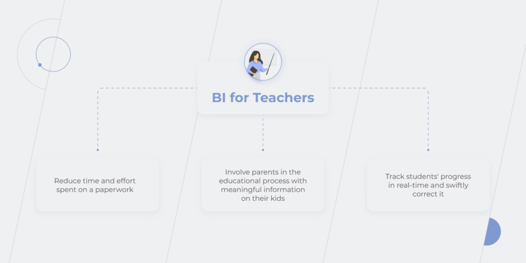 大量的文書工作。 麥肯錫的研究表明,20-40% 的教師論文活動自動化將導致每週騰出 13 個小時。 這將有助於將教師的工作量減少到正常水平,因為現在每周至少有 50 小時。 實施 BI 後,學校管理人員也將鬆一口氣,因為該技術簡化了行政管理並有助於更快地滿足報告要求。