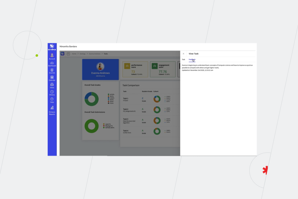 想像一下,如果在整個學校生活中自動收集有關學生在不同學科中表現的數據,然後將其顯示在清晰的儀表板上,那麼學生選擇未來的職業會變得多麼容易。 通過這種方式,學生可以獲得反映他們所有優點和缺點的完整數字肖像。 此外,這些儀表板可以根據學生的興趣和分數分析顯示最適合錄取的學院和大學。 如果學生想就讀特定的大學並選擇特定的專業,也可以突出顯示需要改進的科目或領域。