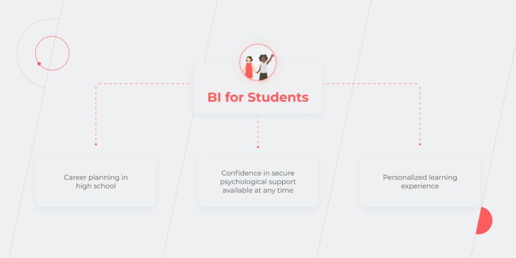 BI在教育領域的實施確保了更好的學習體驗,幫助學生髮展他們的才能,也為他們創造了一個安全的空間。 該技術為學生提供: