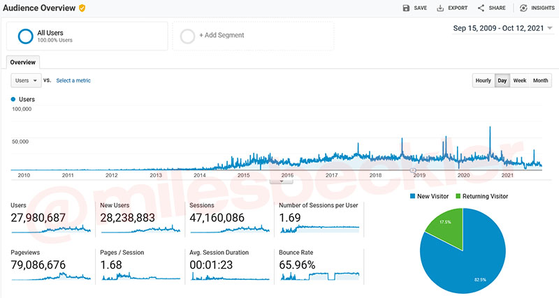 我第一次產生大量自然流量的經歷是通過我妻子的博客,該博客自我們創建以來已獲得超過 40,000,000 次訪問。