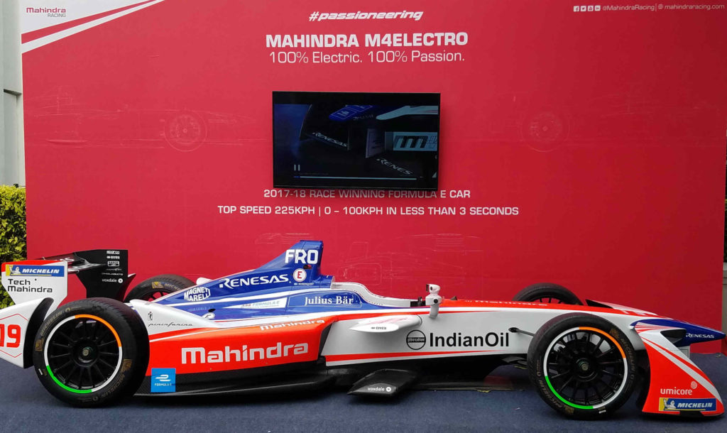 (印英未來科技節上的 Mahindra M4 電動方程式賽車)