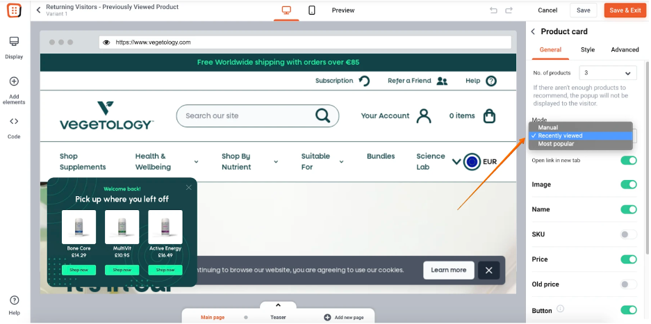 透過在彈出視窗中向他們展示之前查看過的產品,他們只需單擊即可繼續。 這樣,他們就不必從頭開始搜尋之前查看過的項目。