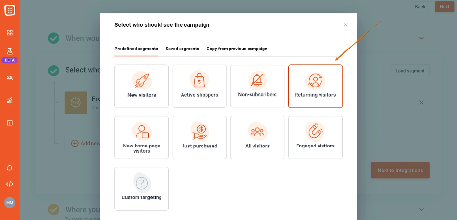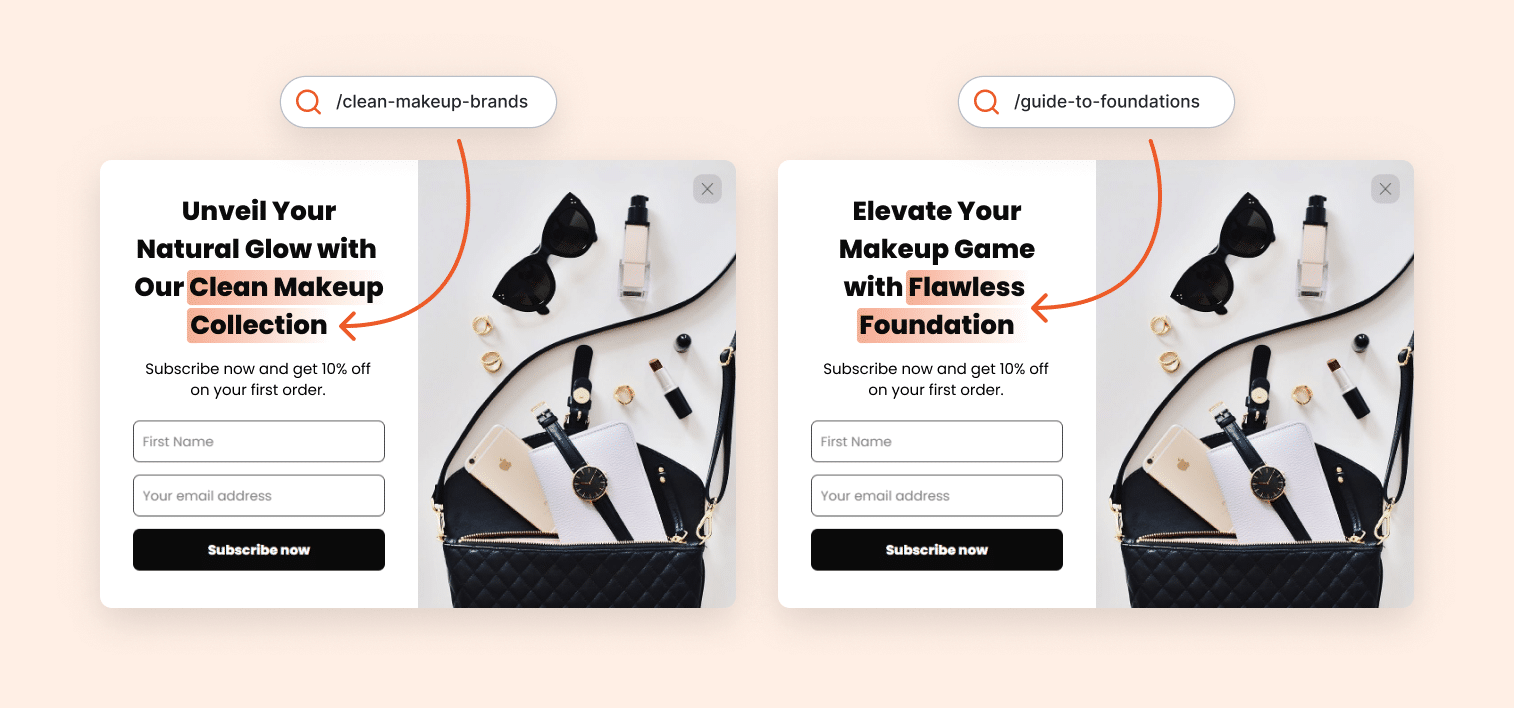 策略#2:為自然訪客提供更個人化的歡迎體驗:使用智慧彈出視窗根據每個訪客的瀏覽行為自動自訂訊息,從而提高參與度。