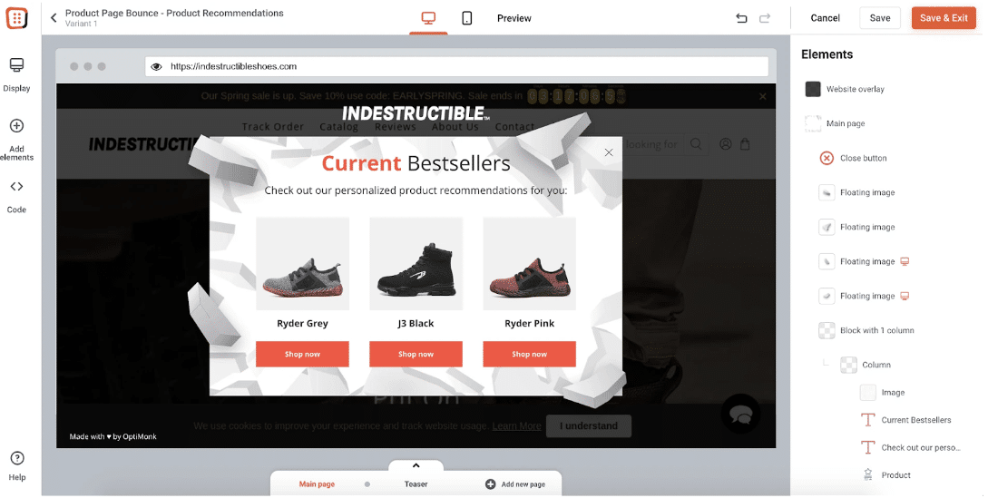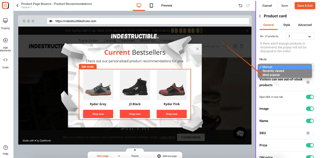 策略#1:停止不打折的放棄:透過展示趨勢產品的退出意圖彈出視窗吸引放棄的訪客,從而增加網站停留時間和轉換率。
