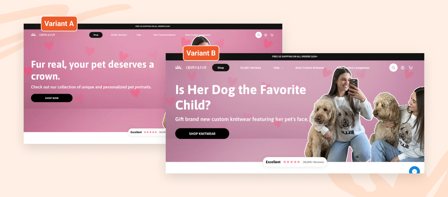 Crown and Paw 的主頁 A/B 測試導致訂單增加了 16%。