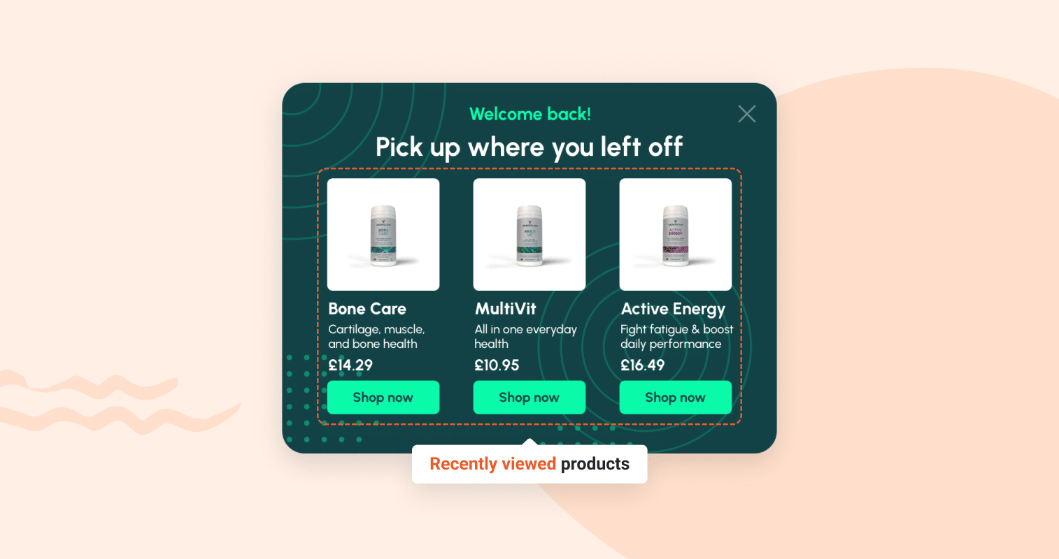 策略#3:透過提醒回訪者上次離開的地方來幫助他們:向回訪者展示以前查看過的產品,簡化他們的購物體驗並降低跳出率。