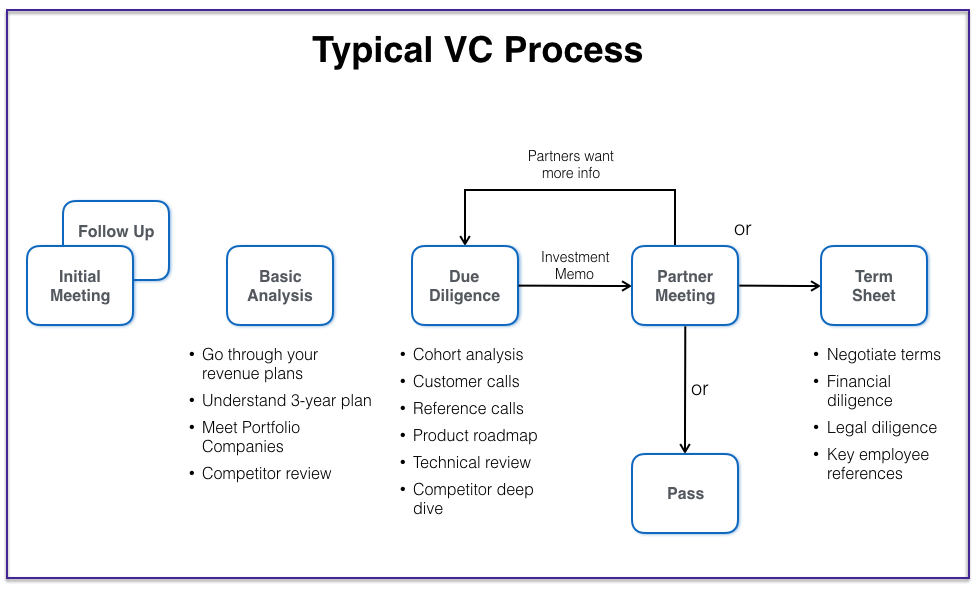 盡職調查會議是最難獲得的,因為 VC 們當然知道這些後續會議為他們創造了義務,如果他們正在平衡五項潛在交易並且還沒有決定你是否合適,那麼他們就不會。不會輕易再見面。