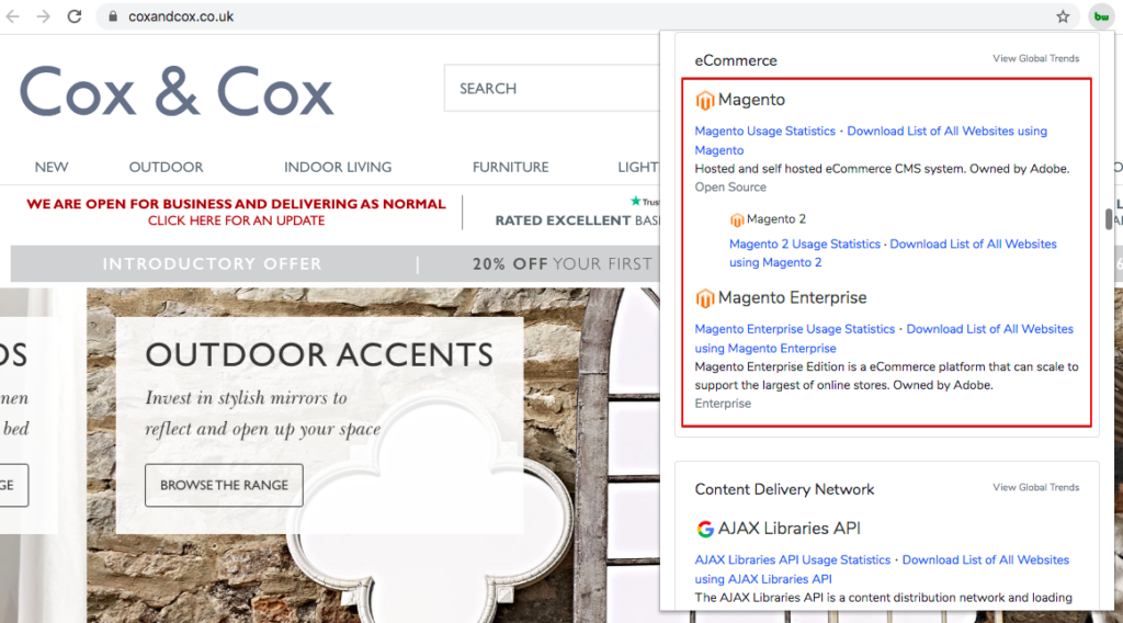 - BuiltWith是一種更高級的解決方案,它不僅可以讓您了解有關內容管理系統的更多信息,還可以提供有關網站上使用的所有技術的詳細信息。