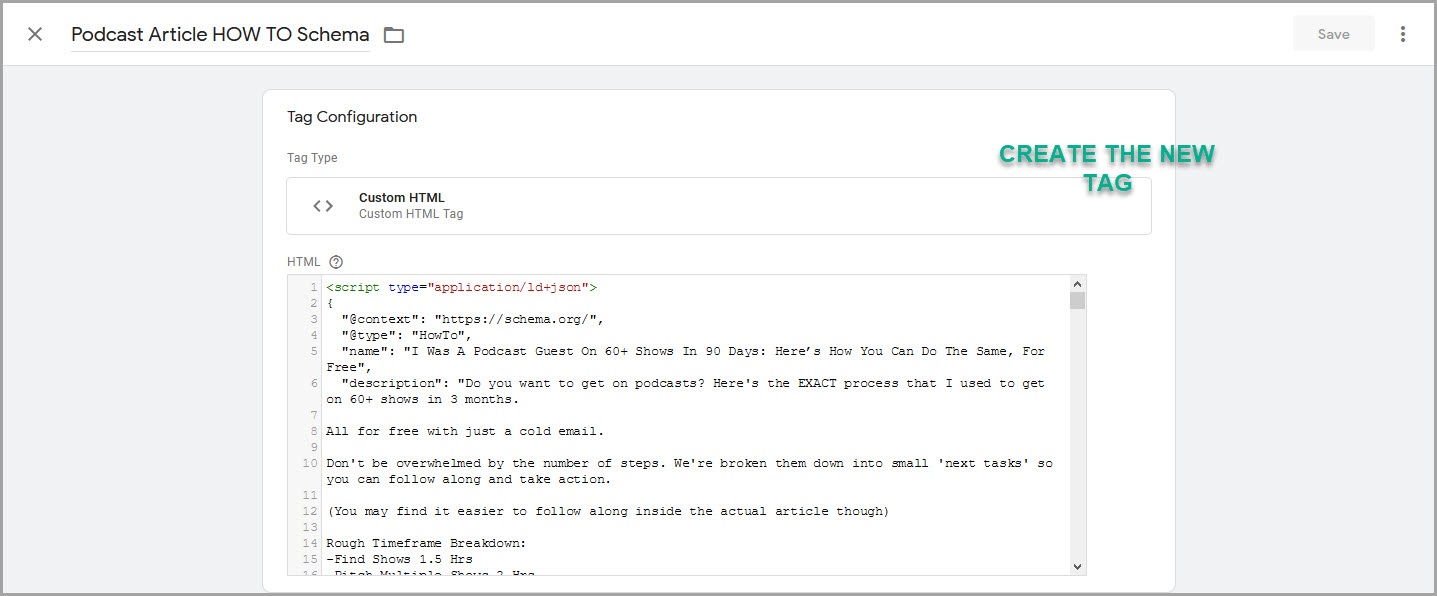 然後,您可以簡單地從記事本複制整個代碼,將其粘貼並點擊保存。