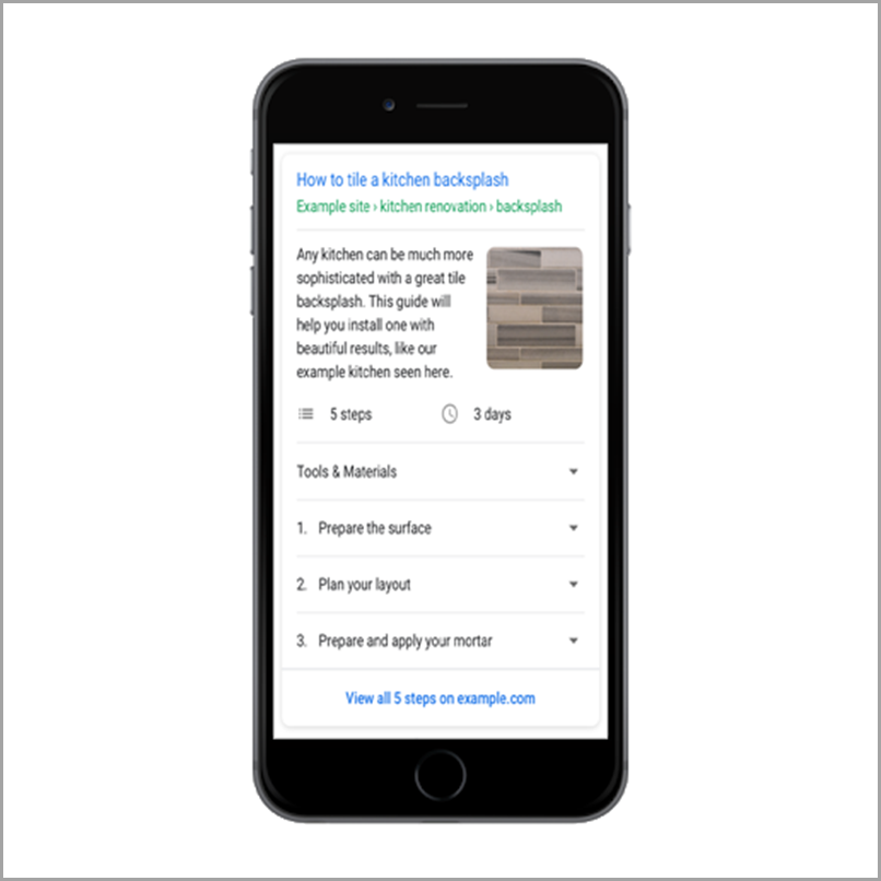因此,我們需要使用“如何做”模式,以便步驟出現在移動搜索結果中。