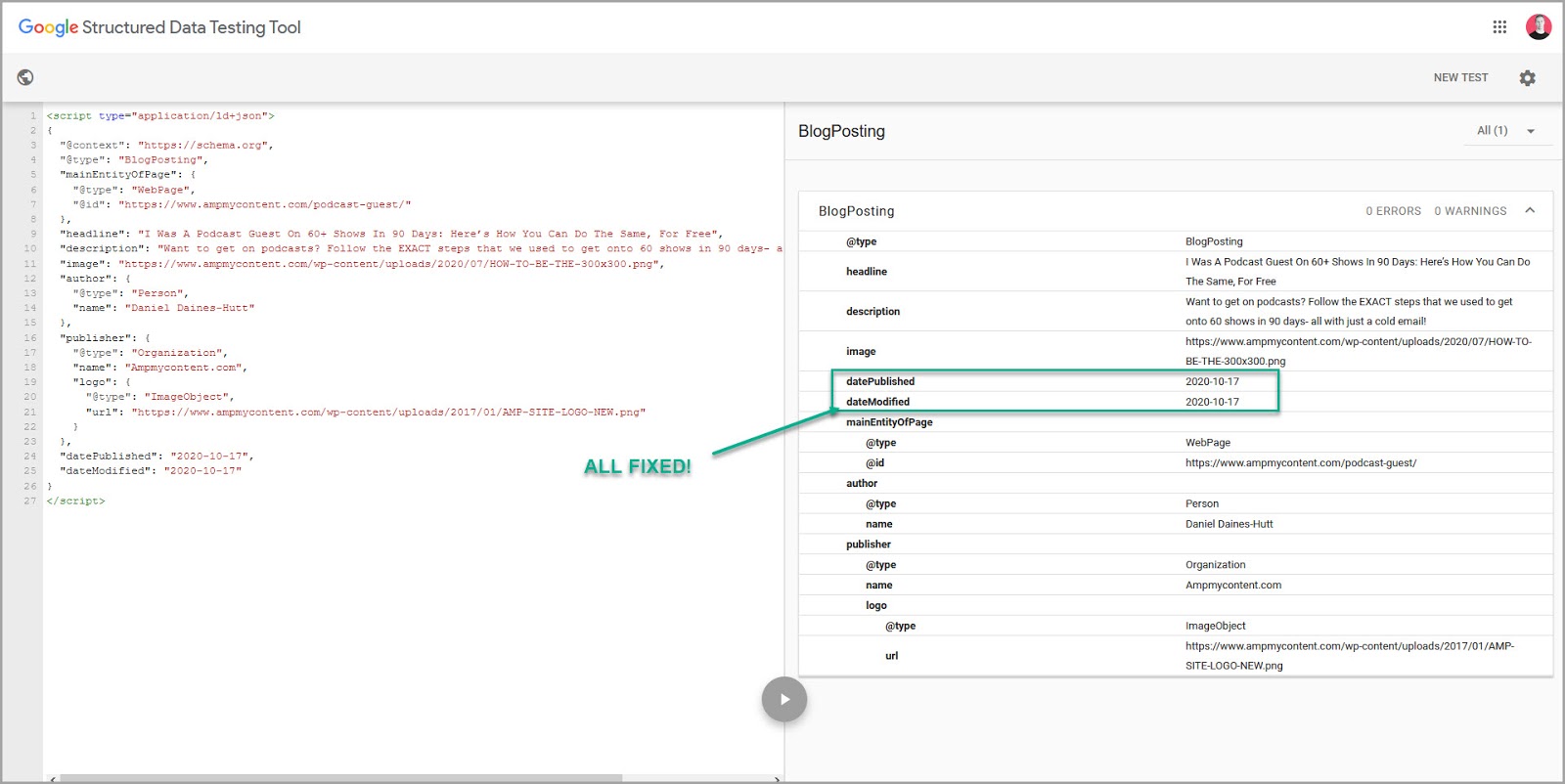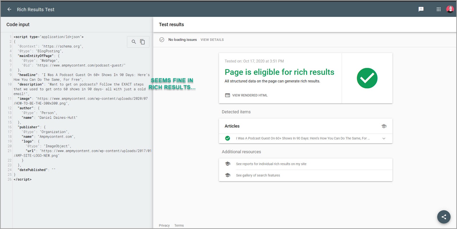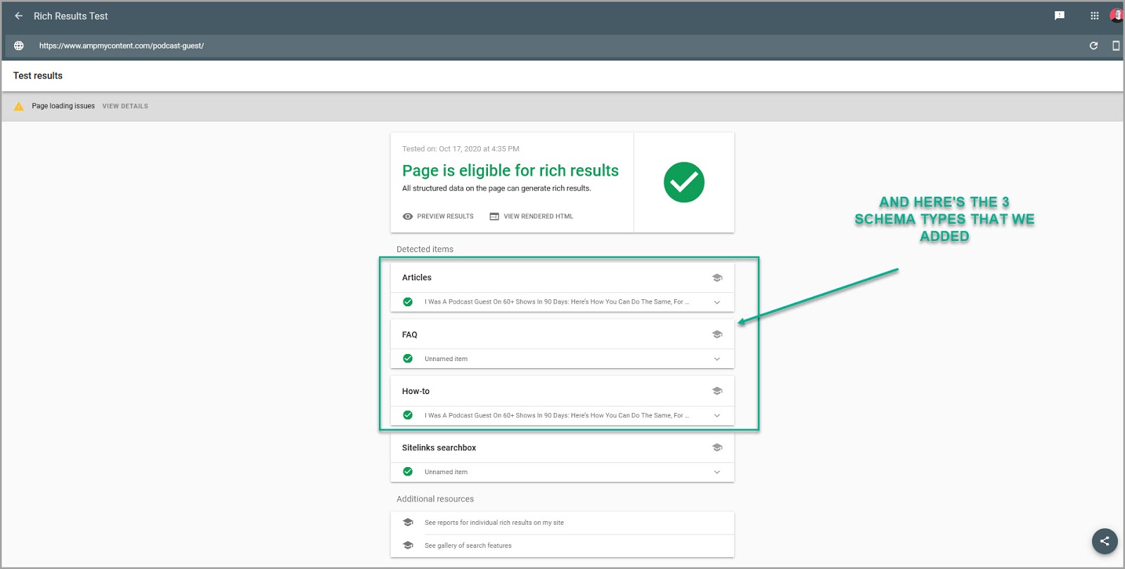 因此,一旦您完成了所有步驟的添加,請繼續並再次測試豐富的結果和結構化數據。