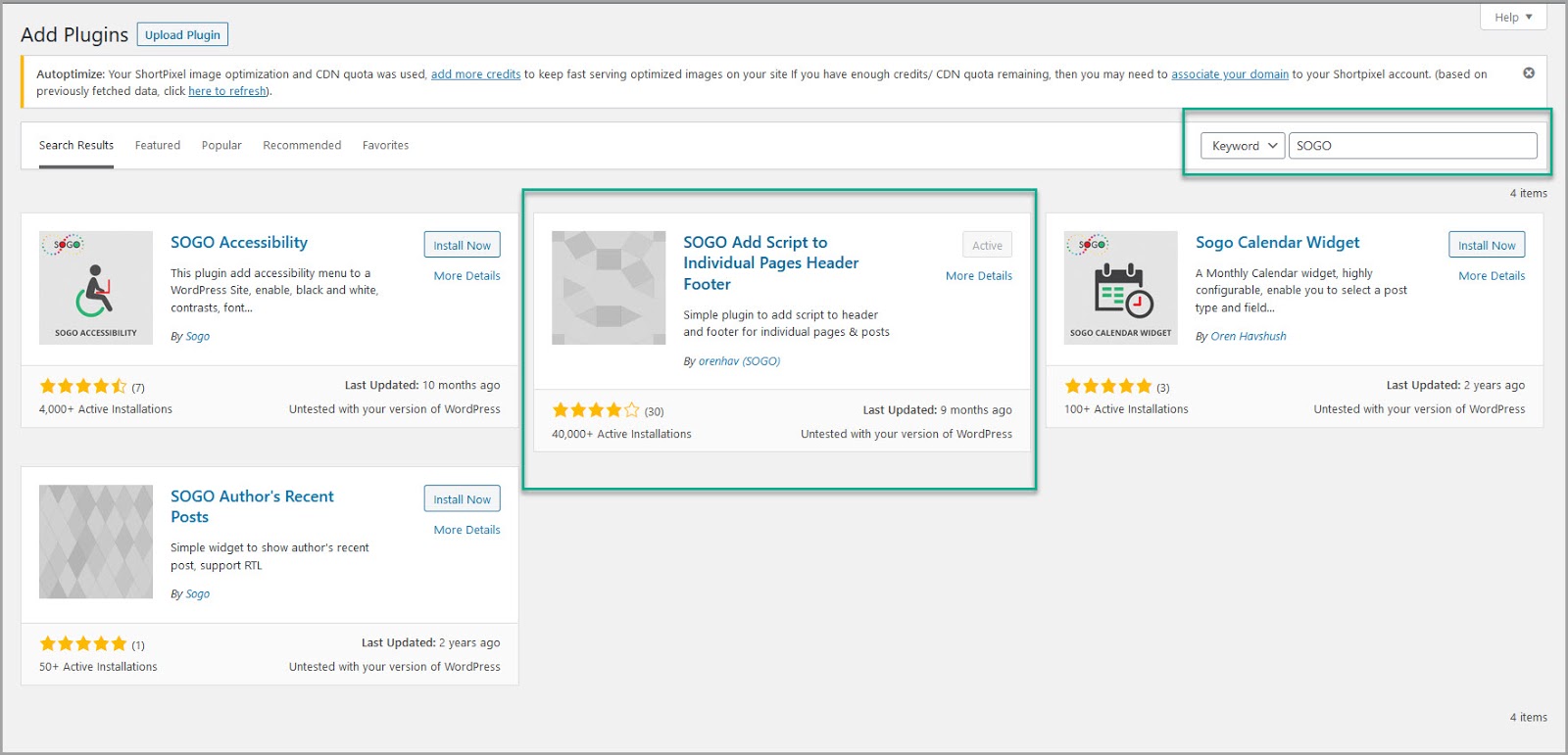 如果您使用的是 Wordpress,您可以獲取一個名為“SOGO Add script to Individual Pages Header Footer”的插件