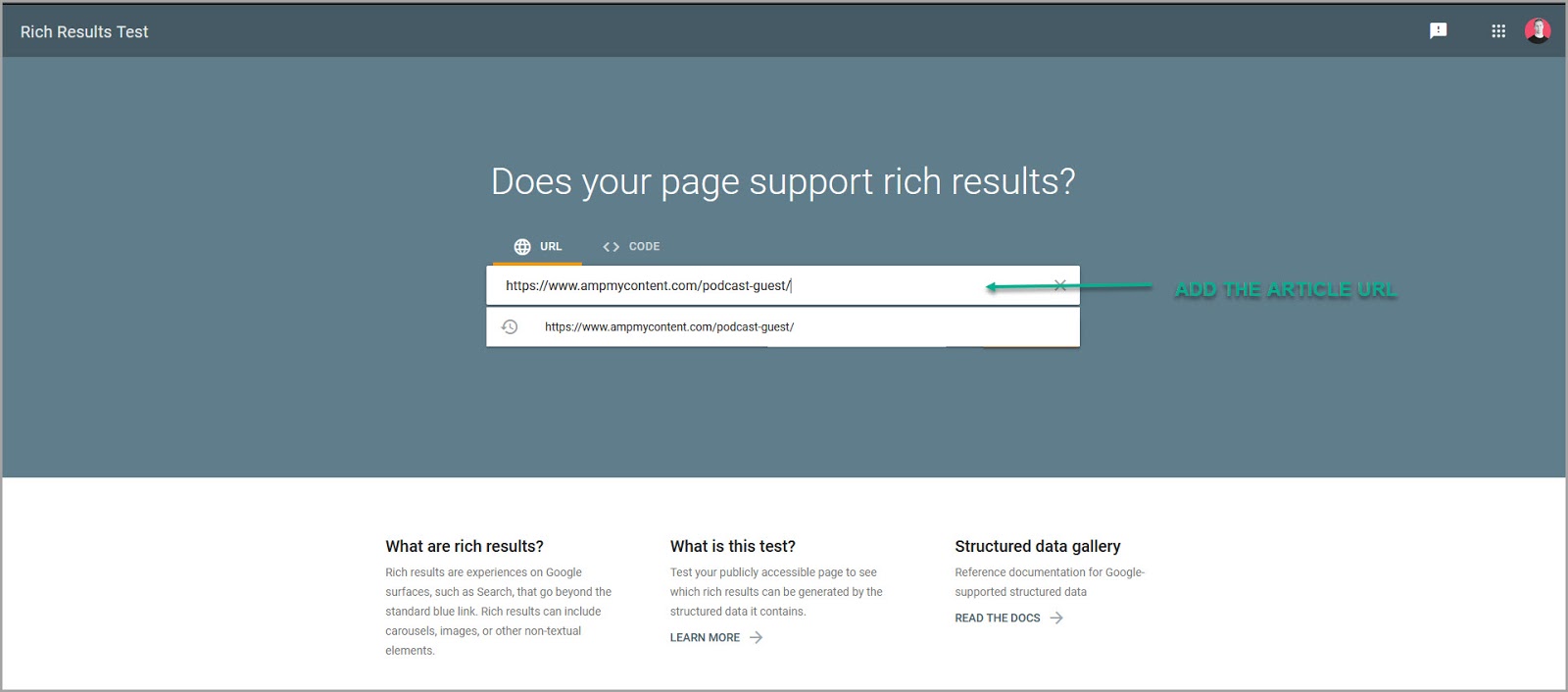 現在我們要測試添加了所有 3 個的頁面本身,因此請前往此處的富結果測試器。