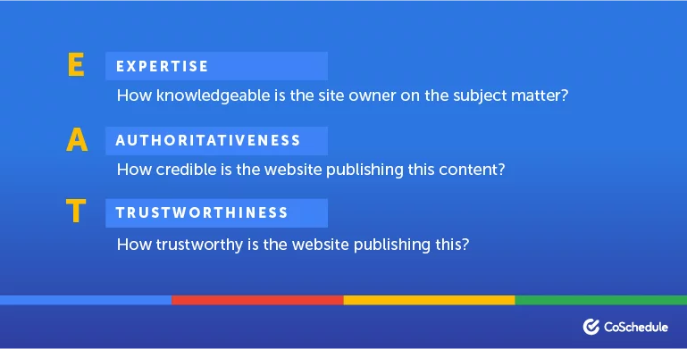 因為信息營銷充滿了細節,並且專門針對小眾受眾,所以在創建內容時,您需要將 EAT 指南放在首位。 信息營銷往往是消費者對您的品牌和業務的第一次深入了解,因此確保您的內容來自專家、權威和可信賴的來源是您可以做的最重要的事情之一。