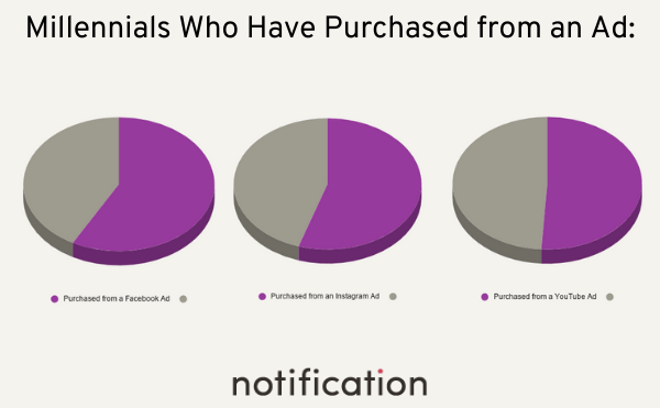 千禧一代也從廣告中購買。 以下是從廣告中購買的千禧一代的細分: