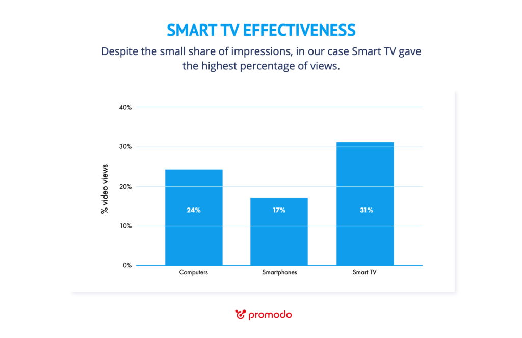 儘管展示次數很少,但在我們的案例中,智能電視的瀏覽次數比例最高。