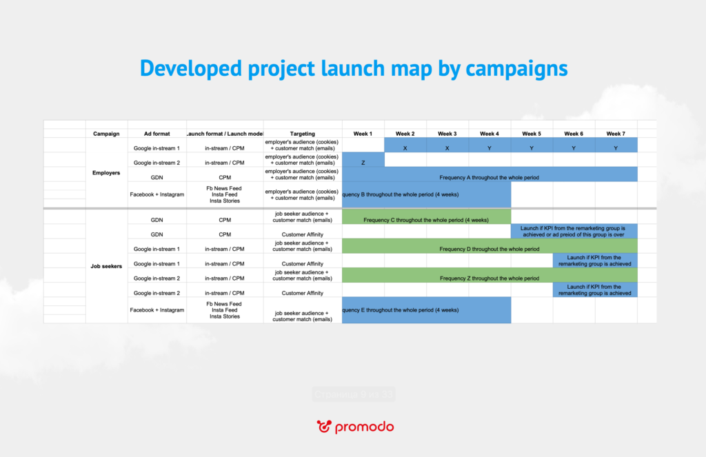 由於我們的主要目標是確保最大程度地覆蓋再營銷受眾,因此我們決定根據以下原則分配 YouTube 和 GDN 上的廣告活動預算: