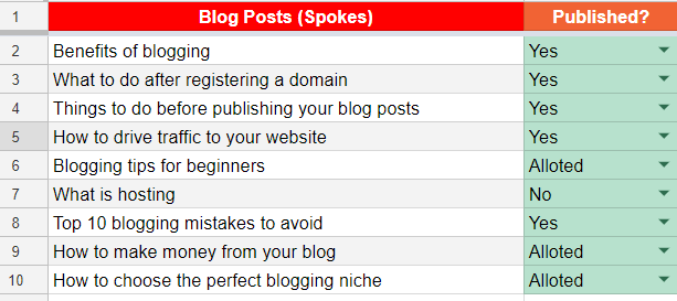 我創建了一個非常強大的中心輻射模型,該模型的中心部分以“如何創建博客”為主題。 那篇文章是我如何從中心頁面自然地構建到輻條頁面的內部鏈接的完美示例。