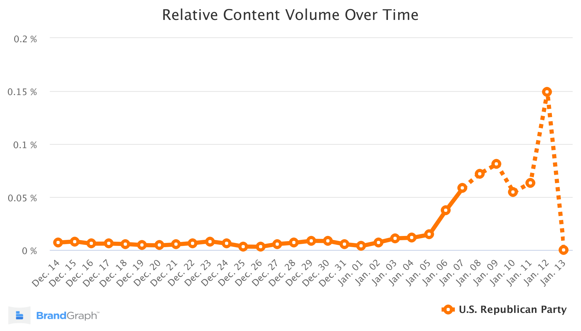已發表: 2021-01-132021 年的第一周最好用過山車來形容。 我們中的許多人對新年寄予厚望,尤其是在我們經歷了 2020 年的瘋狂之後。但是,在 2021 年僅僅六天之後,政治和社會動盪達到了最高水平。 2021 年 1 月 6 日,國會聚集在美國國會大廈計算選舉人票,確認喬·拜登為美國第 46 任總統。 但隨著正式程序的開始,特朗普的支持者遊行到國會大廈,試圖阻止確認。 不久之後發生的暴力事件令人不安,震動了整個國家。 IZEA 的社交情報平台 BrandGraph 記錄了唐納德·特朗普在社交媒體內容和參與度方面的激增,因為世界各地的人們對支持特朗普聲稱選舉被盜的言論做出了反應。