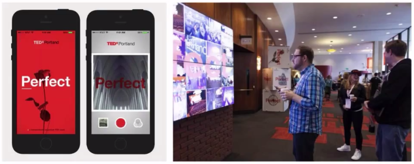 為了宣傳其年度盛會,TEDxPortland 以“完美”為主題,邀請人們提交代表他們對“完美”概念的圖片。 為了讓這一切變得盡可能簡單,TEDxPortland 移動應用程序提供了一個工具,可以在這些圖像上放置一個過濾器,並用“完美”的文字覆蓋它們。 因此,當提交的作品發佈在社交媒體上時,它們具有統一的外觀,有助於吸引外部觀眾並鼓勵參與。